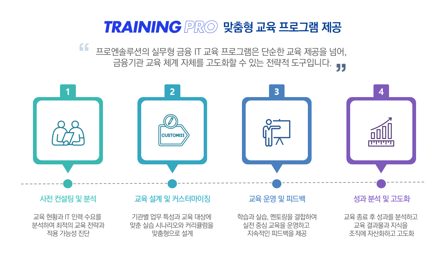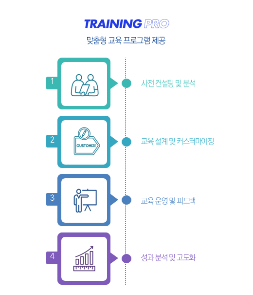 - 교육 기간, 교육 강도, 과정 구성 등 맞춤형 커리큘럼 설계